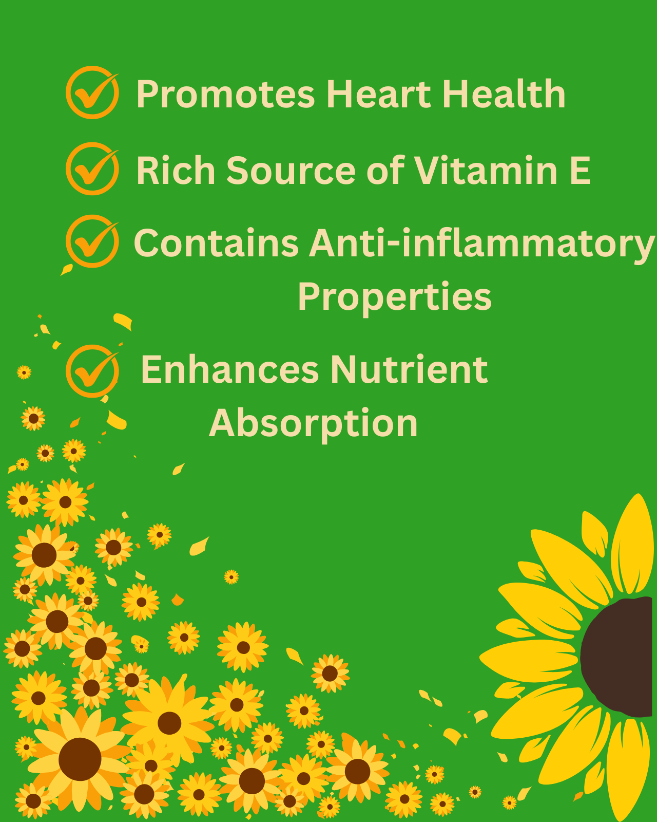 Heart Health: Its unsaturated fats (MUFAs/PUFAs) help lower bad (LDL) cholesterol and support overall cardiovascular function, especially when high-oleic varieties replace saturated fats.